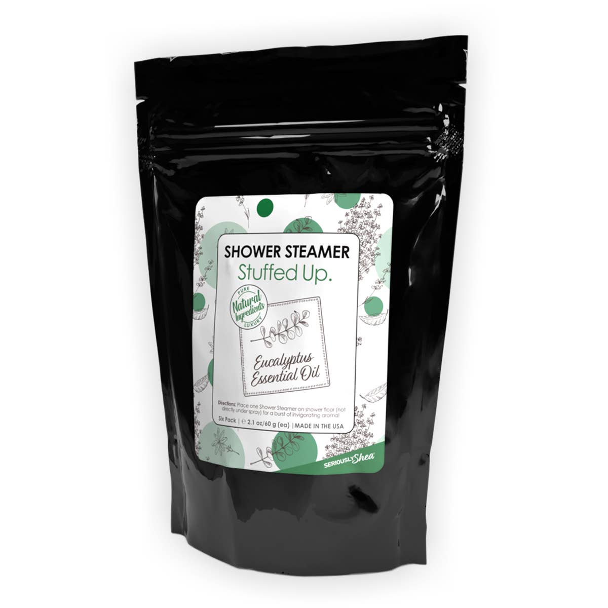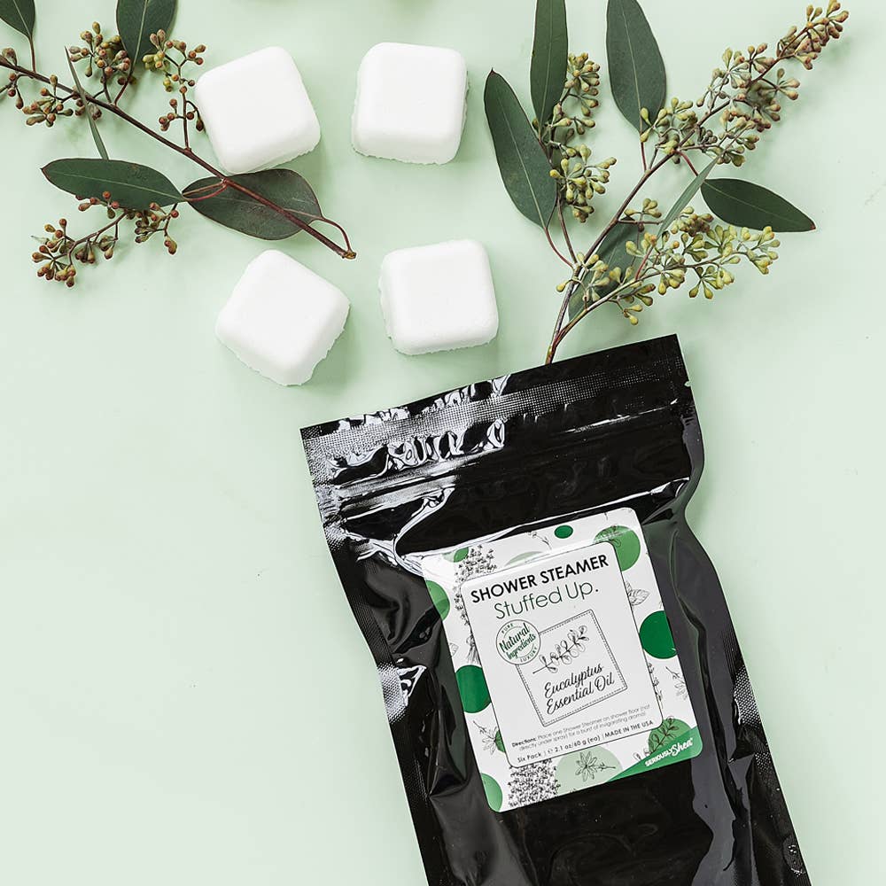 Our 6-pack essential shower steamers are your ticket to a refreshing and rejuvenating shower experience that awakens the senses and revitalizes your spirit. These compact, fragrant tablets bring the luxury of a spa right into your own bathroom, turning your daily shower into a therapeutic escape. Each bag consists of 6 individual steamers to place on the floor of the shower, when ready to use. Made in the USA with natural essential oils for a burst of eucalyptus essential oil. - Includes six (6) Aromatherapy Shower Steamers in scent of your choice, 2.1 oz each - Each steamer is sized for 1—2 showers - Made with natural essential oils - Unique fragrance combinations -Great gift idea -Vegan and cruelty-free -Proudly handmade in the USA.