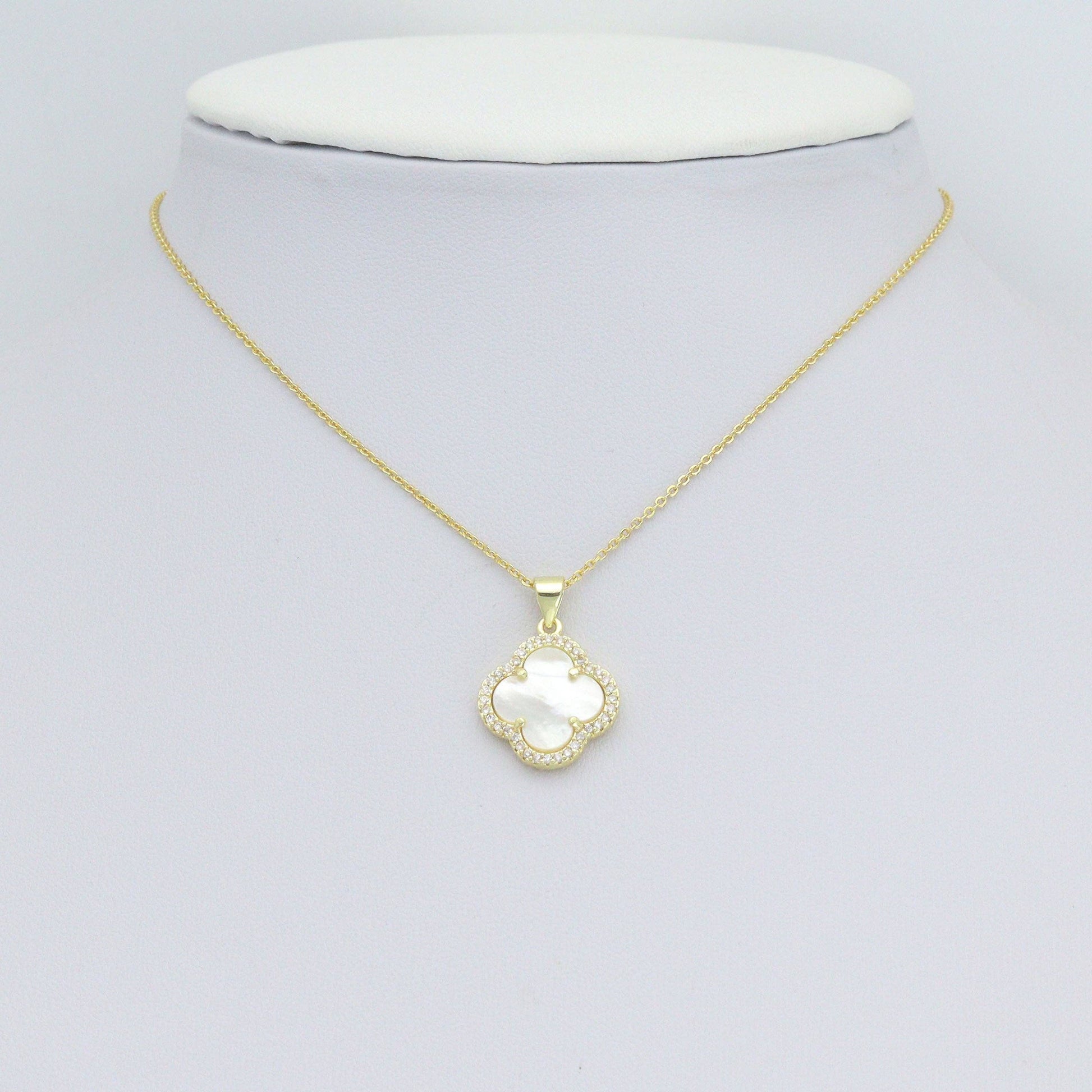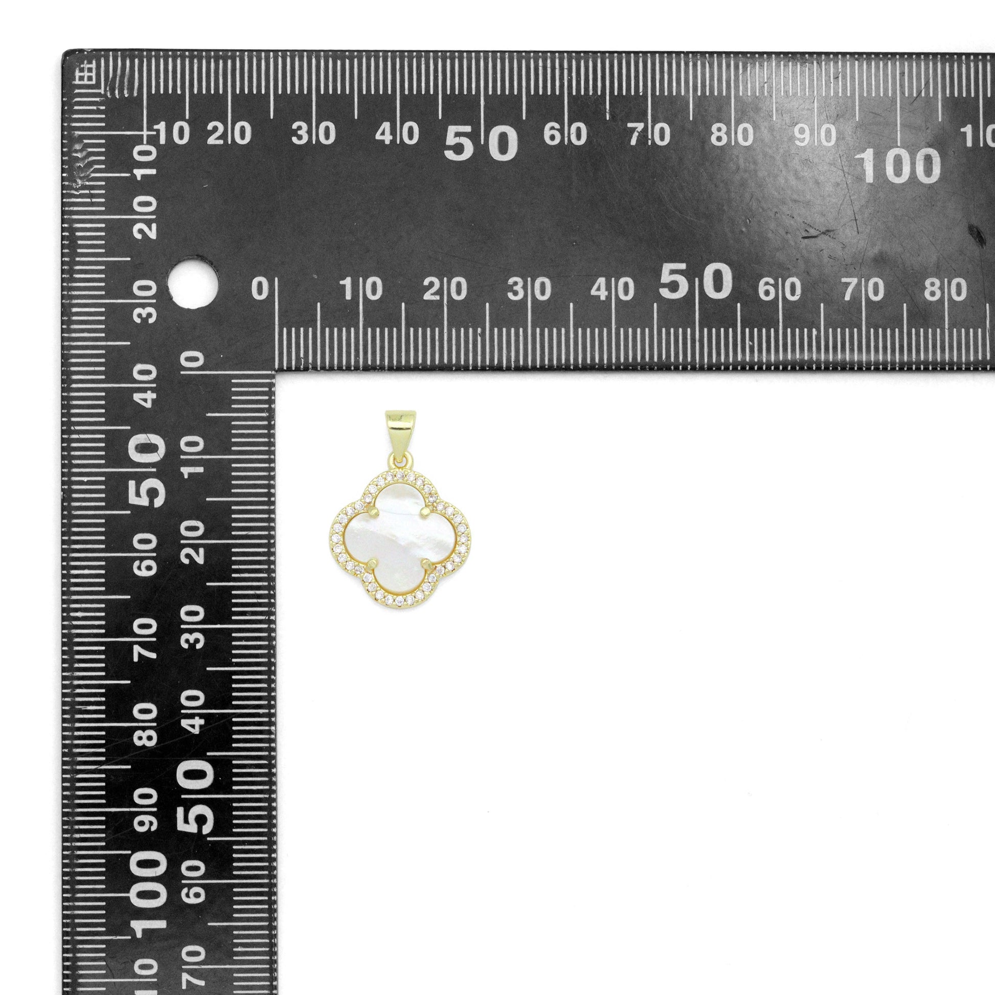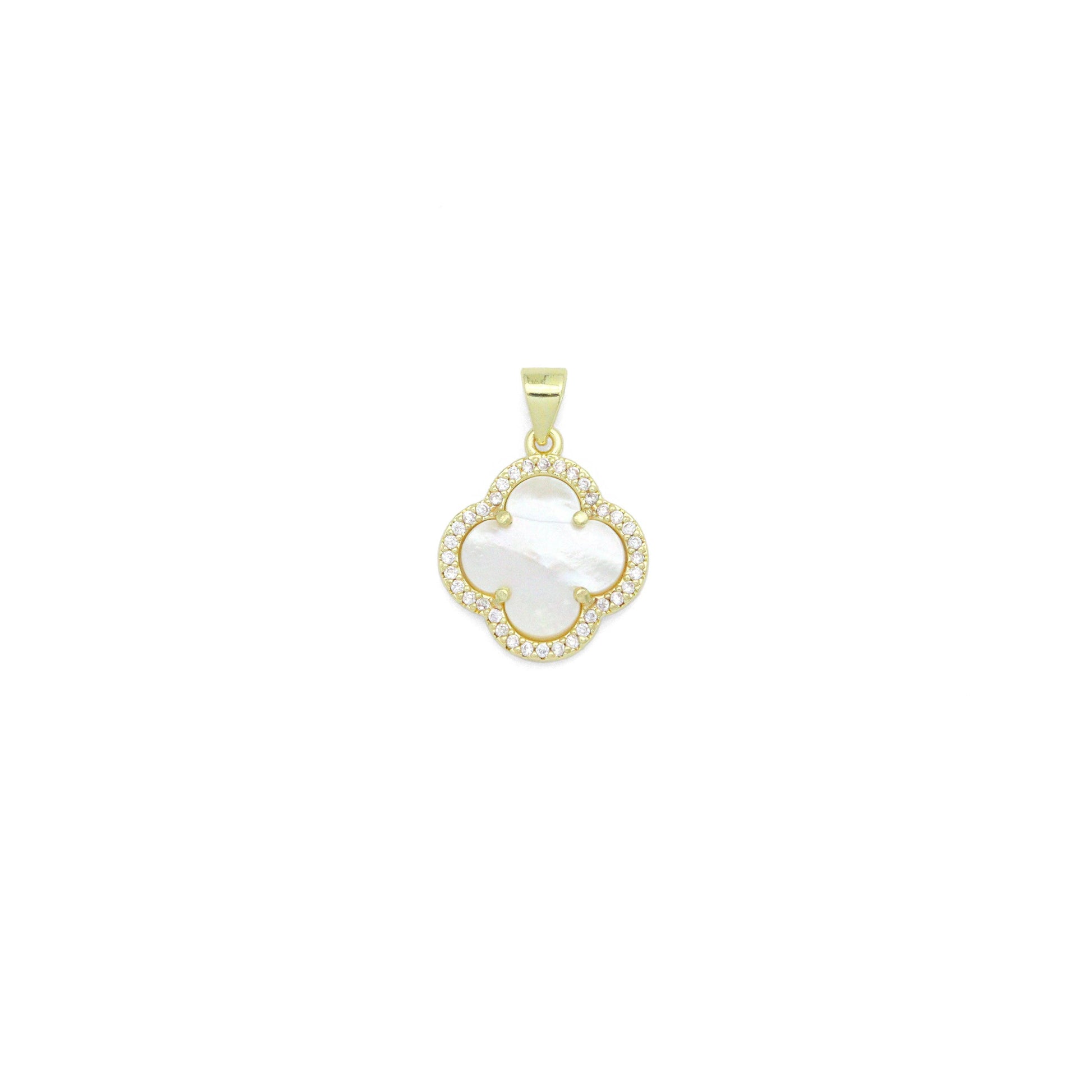 Clear CZ Double sided Mother of Pearl Gold flower Charm Pendant
