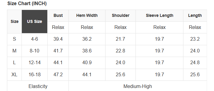See size chart for approximate measurements.