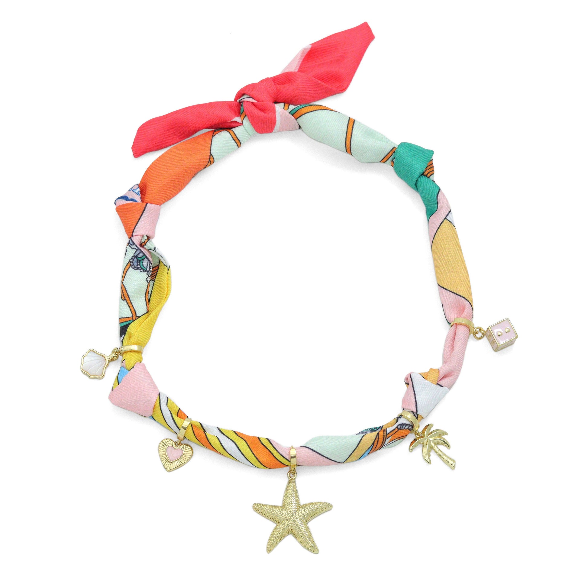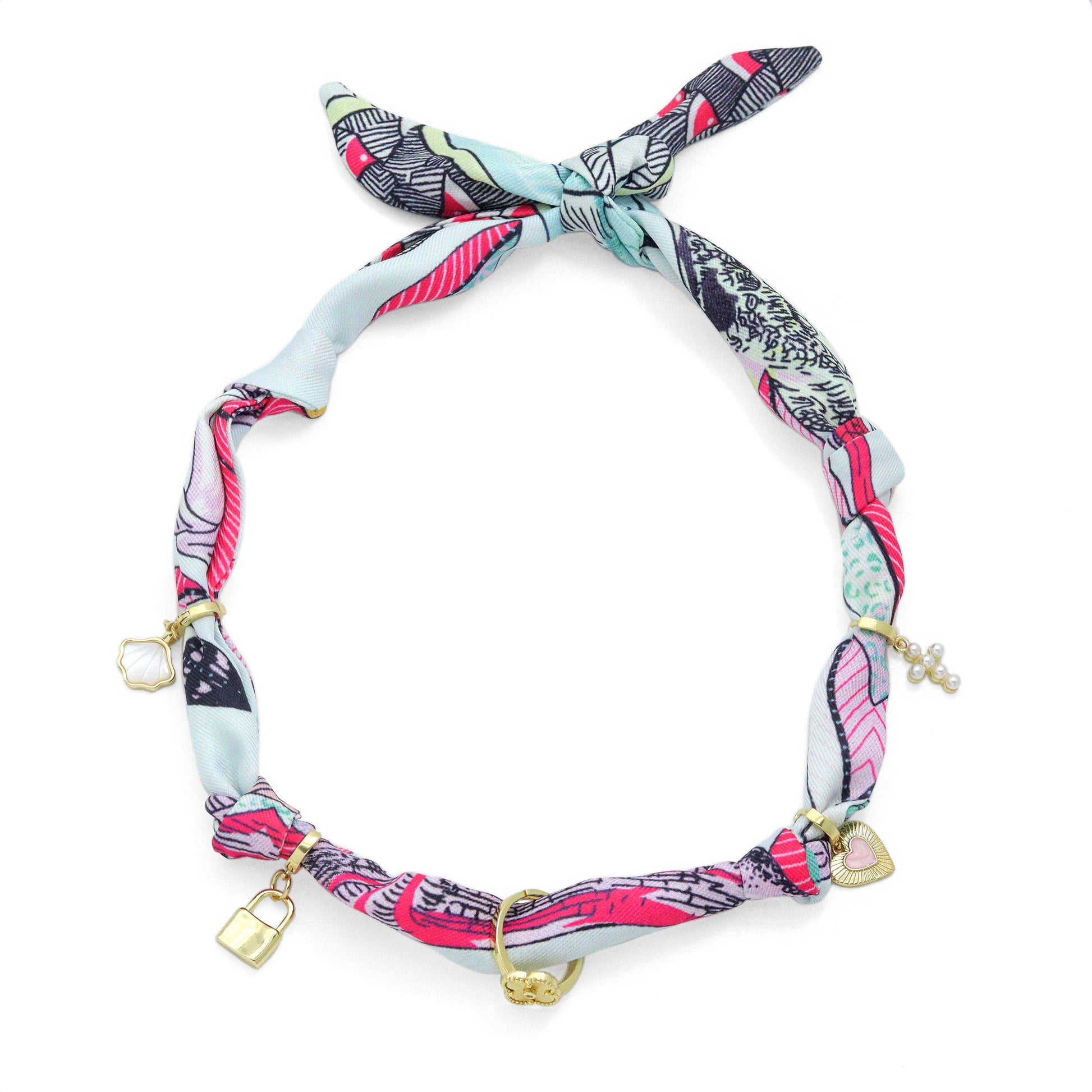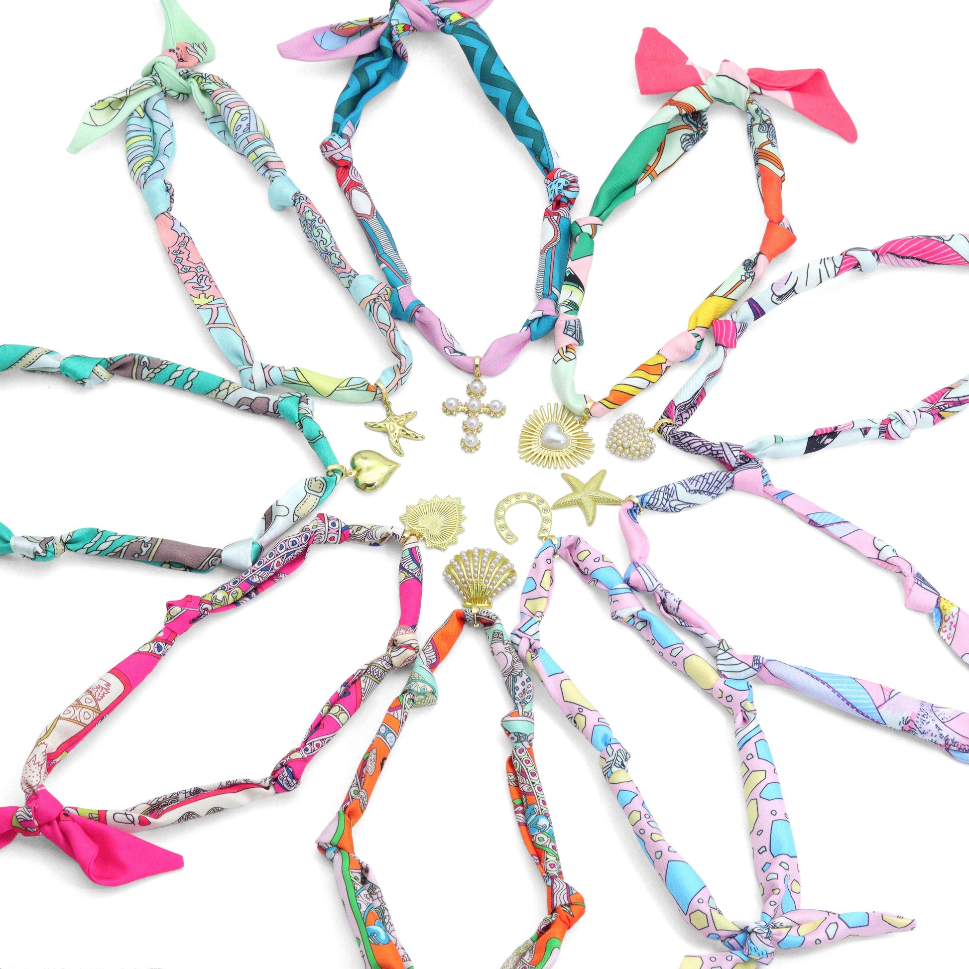 Why You’ll Love It: ✅ Adjustable knot lets you wear it your way ✅ Interchangeable 18k gold-plated charms ✅ Lightweight emulation silk – soft and breathable ✅ Travel-friendly, no tangle, packs flat