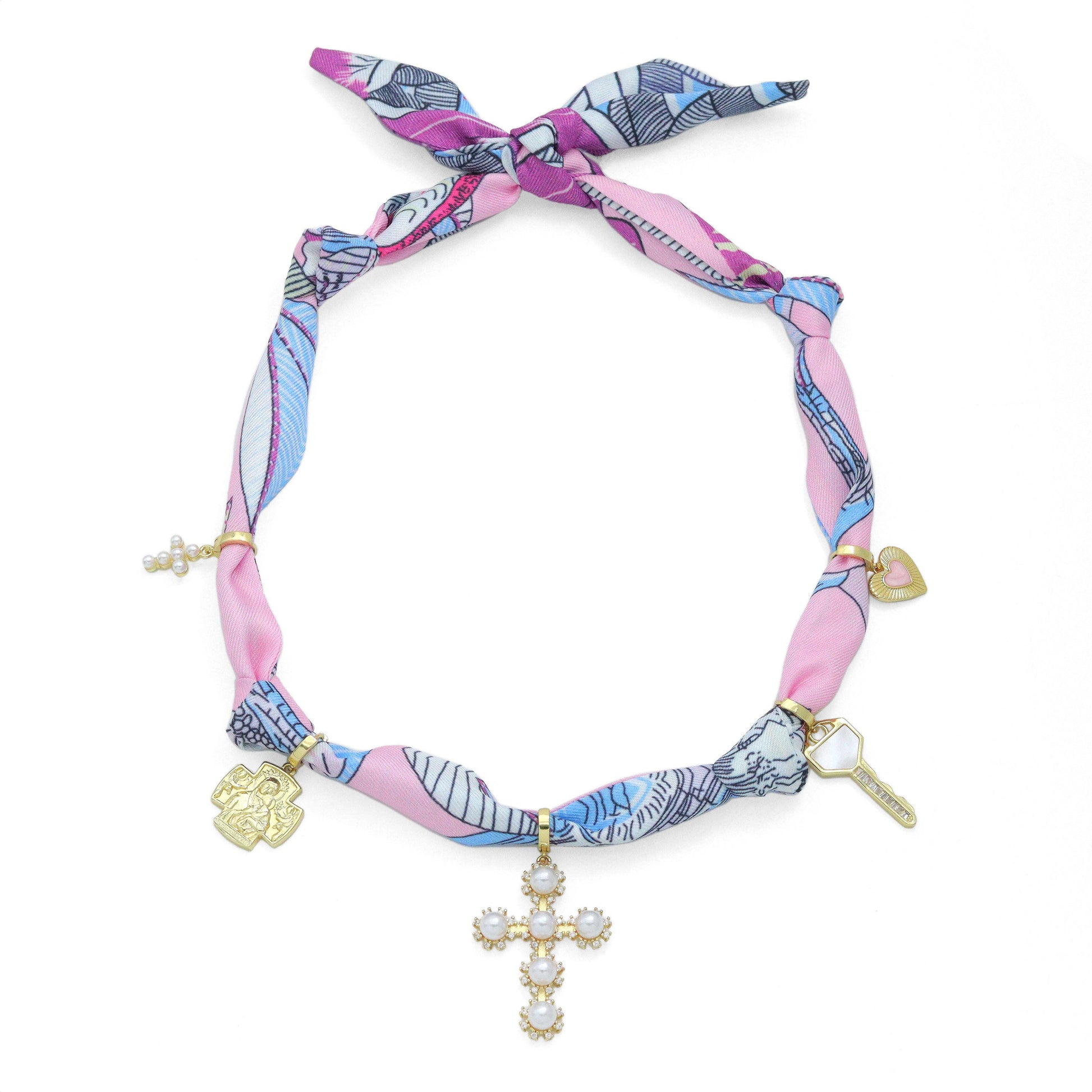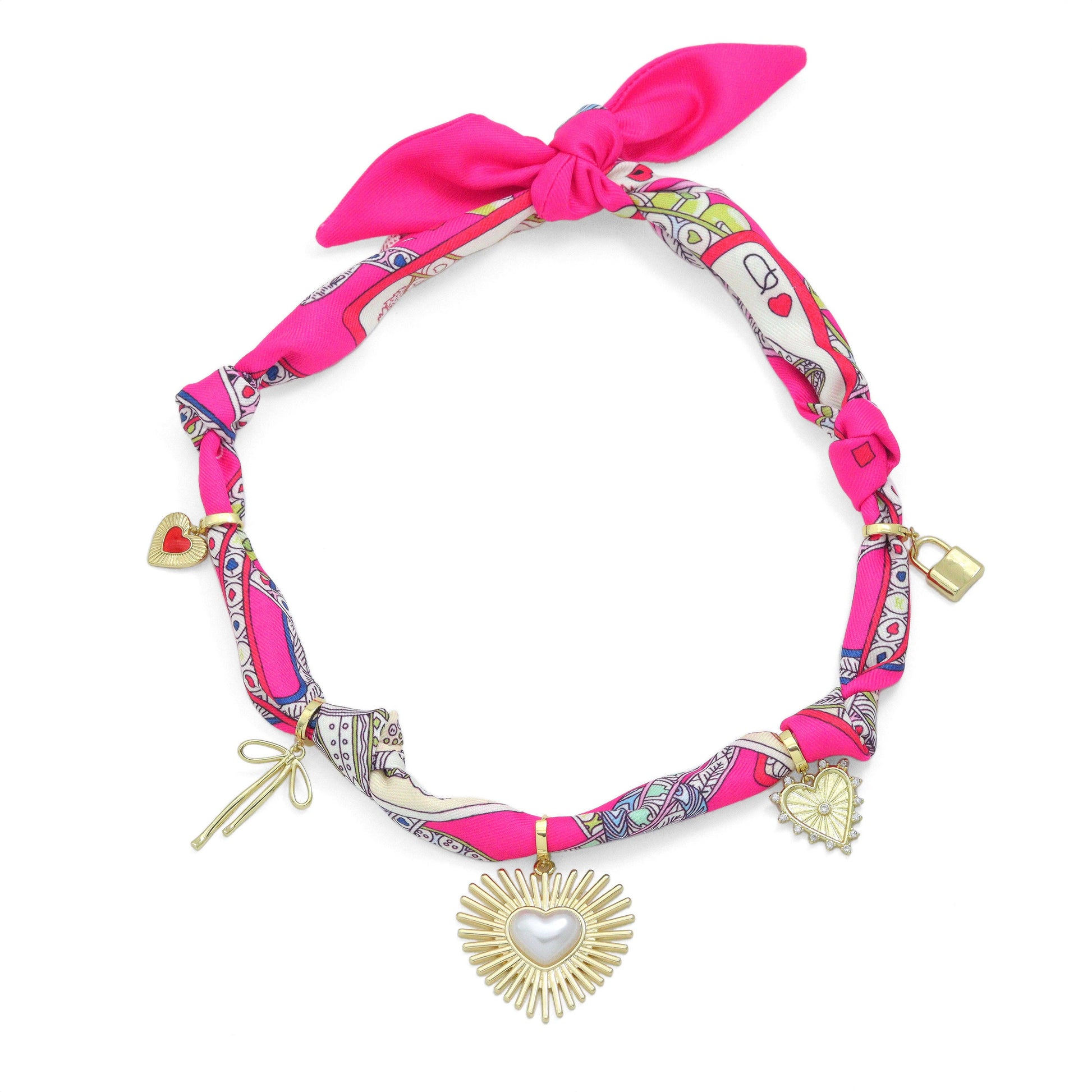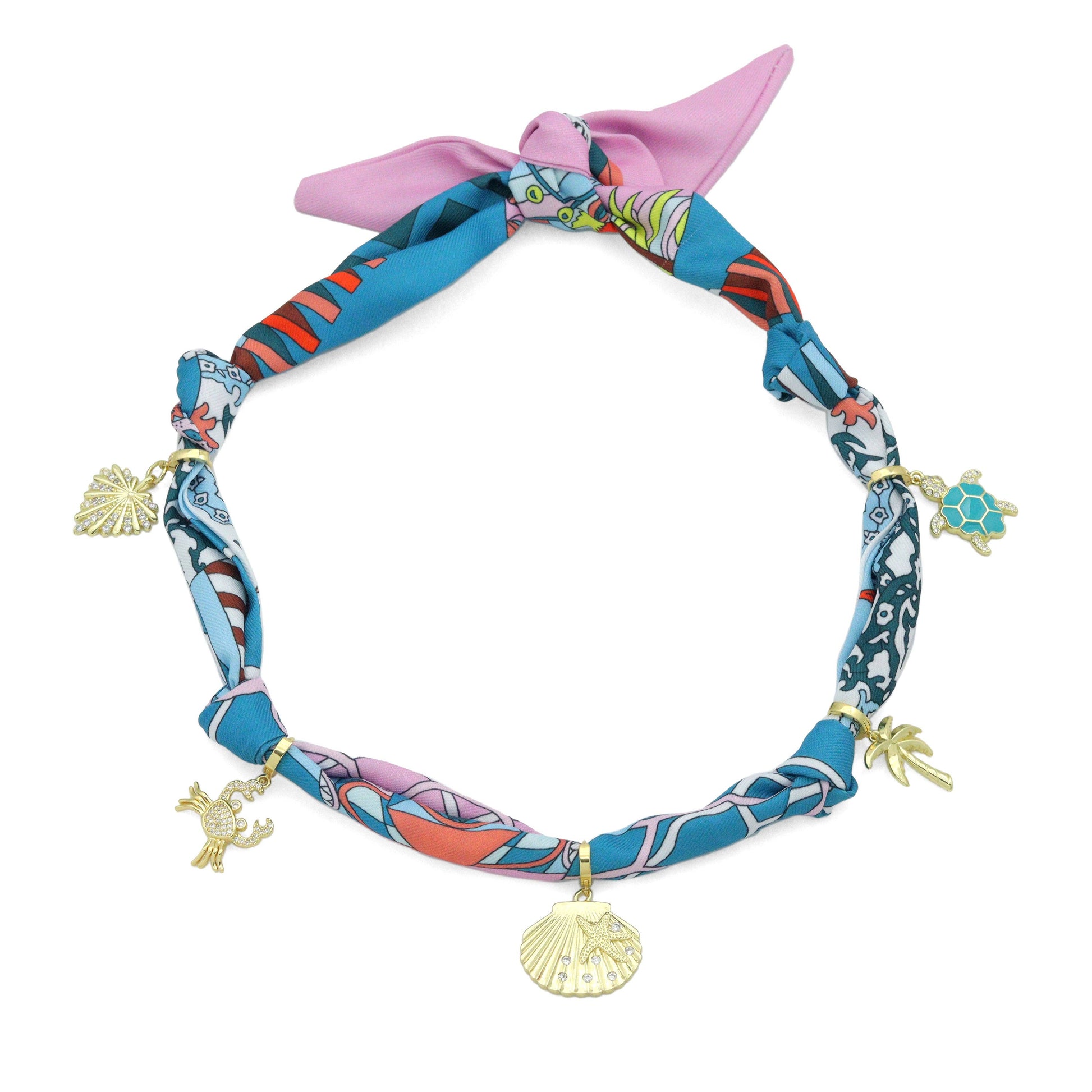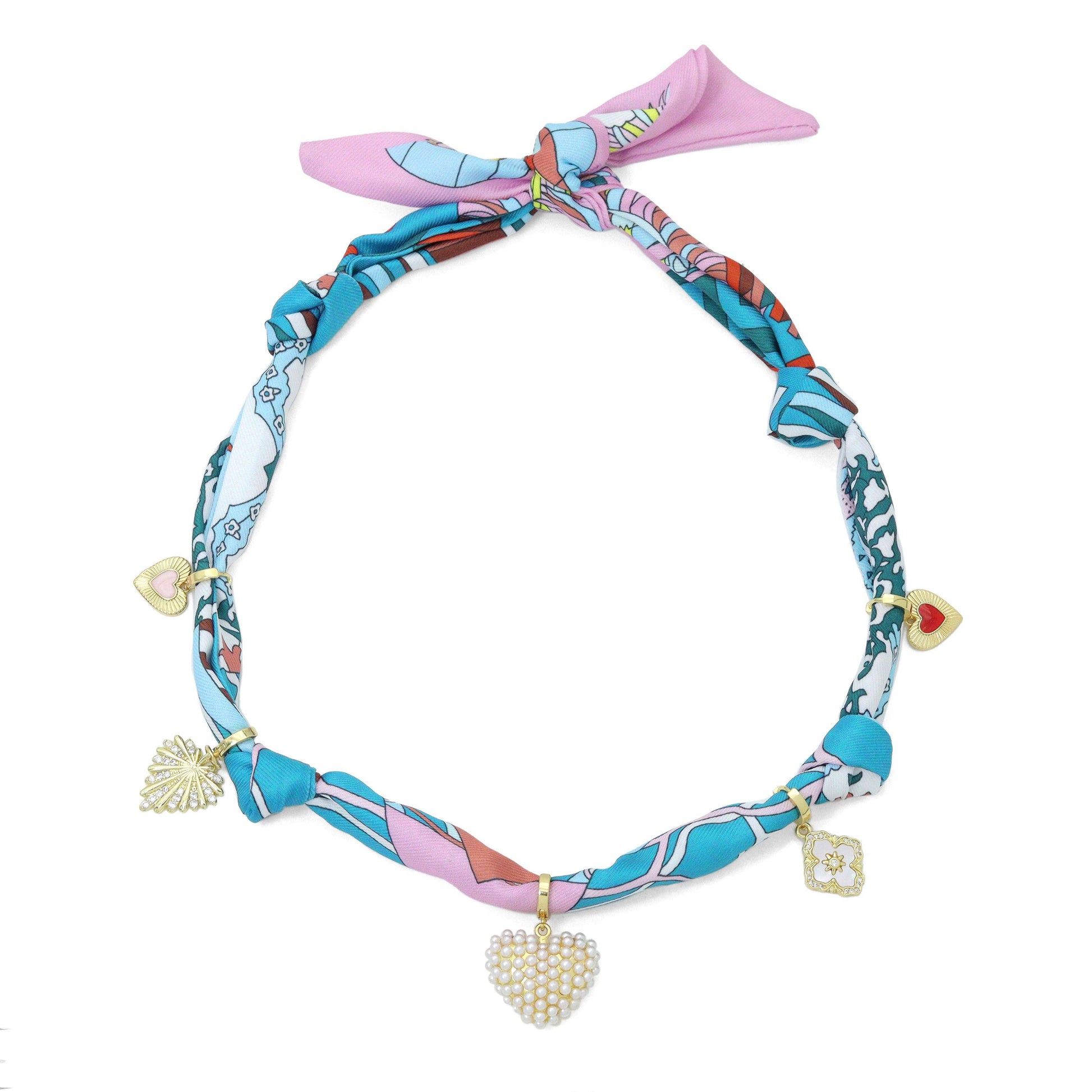 Why You’ll Love It: ✅ Adjustable knot lets you wear it your way ✅ Interchangeable 18k gold-plated charms ✅ Lightweight emulation silk – soft and breathable ✅ Travel-friendly, no tangle, packs flat