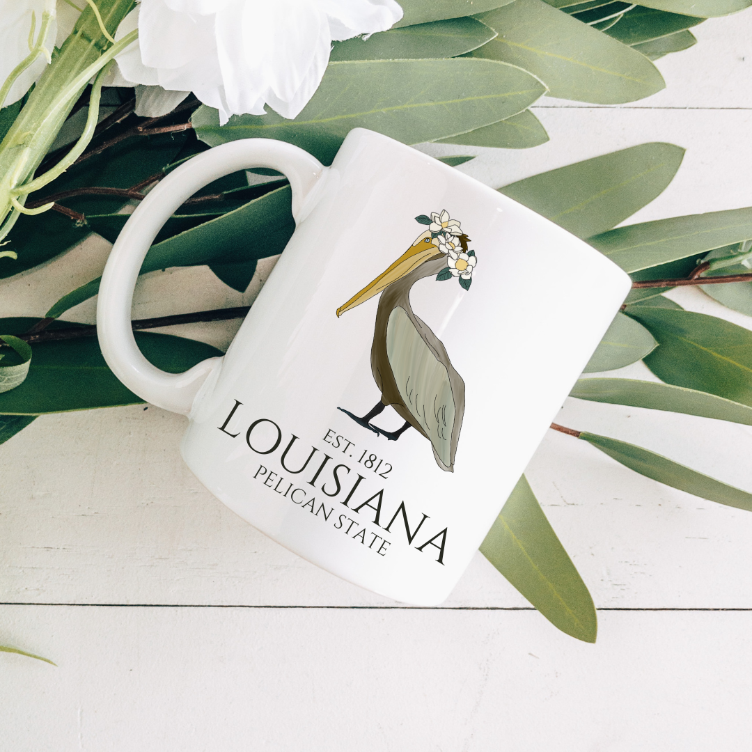 Experience the regal beauty of Louisiana with our captivating pelican wearing a crown of magnolia flowers. The phrase "Est. 1812 Louisiana Pelican State" adds a touch of history and pride to this exquisite design. Wear the crown of the Pelican State with grace and elegance.